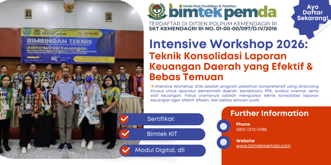 👉 Segera daftarkan instansi Anda dalam Intensive Workshop 2026 dan wujudkan laporan keuangan daerah yang efektif, akurat, serta bebas temuan audit!
