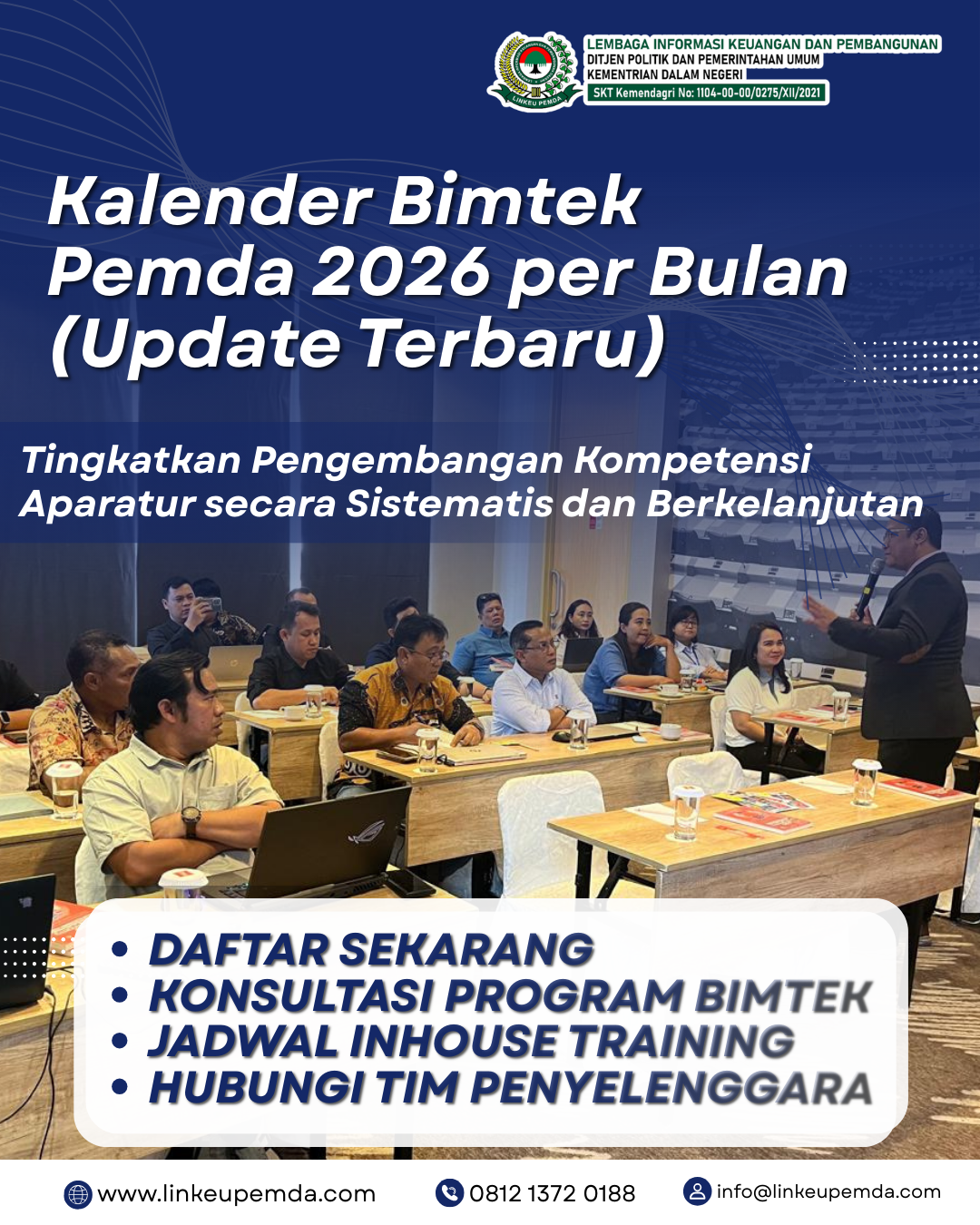 Kalender Bimtek Pemda 2026 per Bulan (Update Terbaru) menjadi panduan penting bagi pemerintah daerah dalam merencanakan pengembangan kompetensi aparatur secara sistematis dan berkelanjutan. Dengan memanfaatkan kalender ini, daerah dapat memastikan setiap bimtek yang diikuti benar-benar relevan dan berdampak pada peningkatan kinerja organisasi.