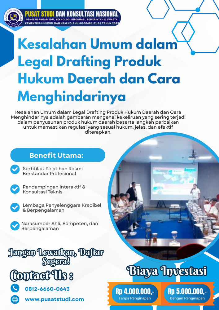 Kesalahan dalam legal drafting produk hukum daerah merupakan persoalan serius yang dapat menghambat efektivitas kebijakan dan menimbulkan risiko hukum bagi pemerintah daerah. Dengan memahami kesalahan-kesalahan umum serta cara menghindarinya, aparatur daerah dapat meningkatkan kualitas regulasi yang dihasilkan.