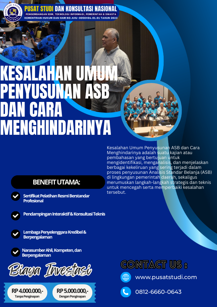 Kesalahan dalam penyusunan ASB tidak hanya berdampak pada kualitas dokumen perencanaan, tetapi juga berpotensi menimbulkan temuan pemeriksaan, inefisiensi anggaran, hingga menurunnya kepercayaan publik. Oleh karena itu, pemahaman yang baik mengenai kesalahan umum dalam penyusunan ASB dan cara menghindarinya menjadi hal yang sangat krusial, terutama menjelang penyusunan anggaran Tahun 2026.