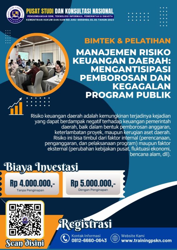Tingkatkan kapasitas aparatur Anda melalui kegiatan pelatihan profesional agar mampu mengimplementasikan manajemen risiko secara efektif dalam setiap tahapan perencanaan dan penganggaran.
