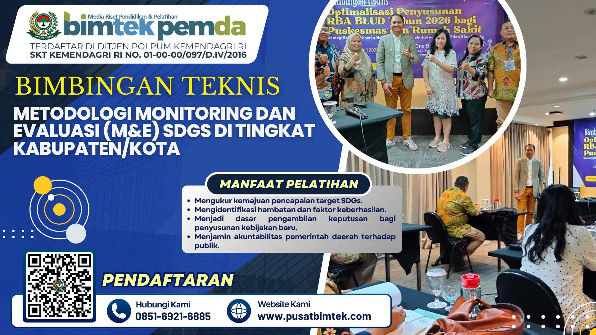 Segera tingkatkan kapasitas tim daerah Anda melalui pelatihan dan pendampingan seperti Bimtek Integrasi Tujuan Pembangunan Berkelanjutan (SDGs) dalam RPJMD dan RKPD, agar pelaksanaan M&E SDGs lebih efektif dan terarah demi masa depan pembangunan yang berkelanjutan.