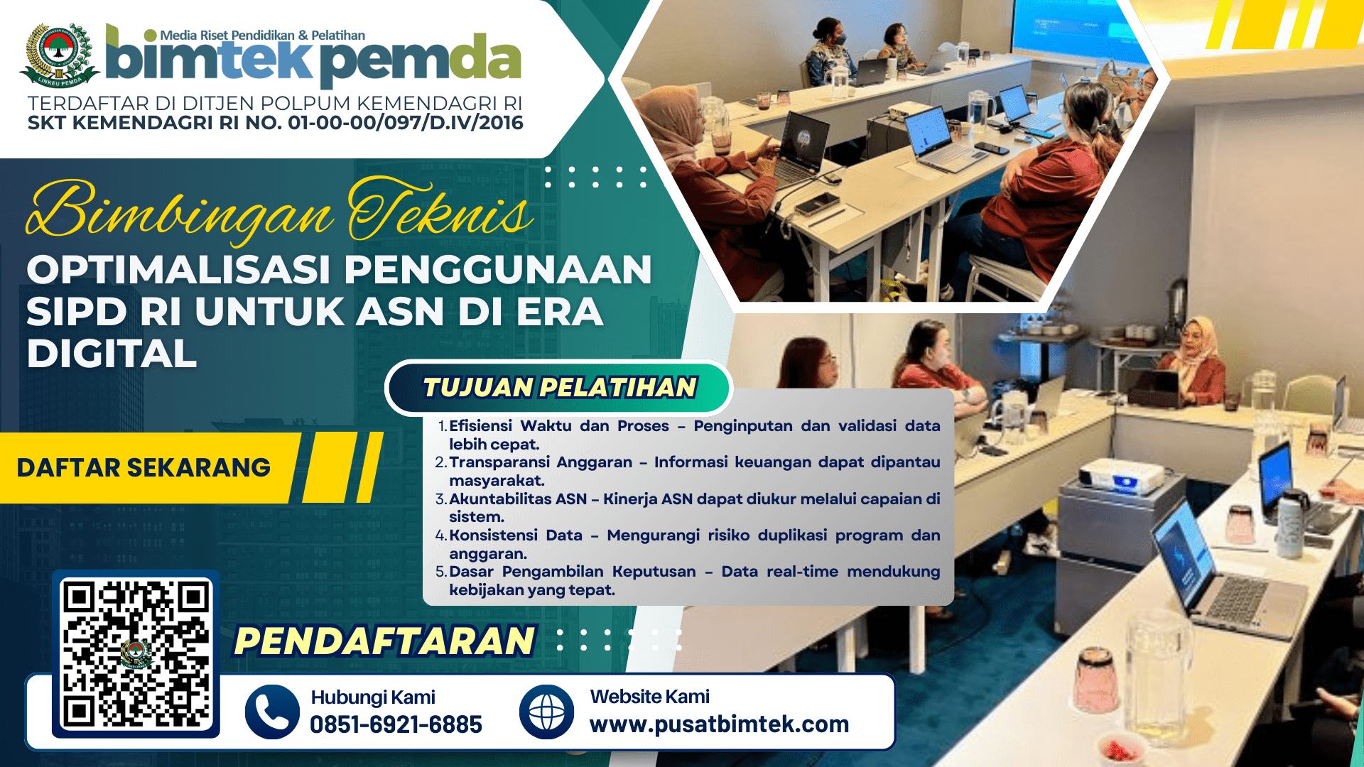 Segera tingkatkan kapasitas ASN Anda dengan pelatihan SIPD RI agar pengelolaan keuangan daerah menjadi lebih efektif, efisien, dan berdaya saing.