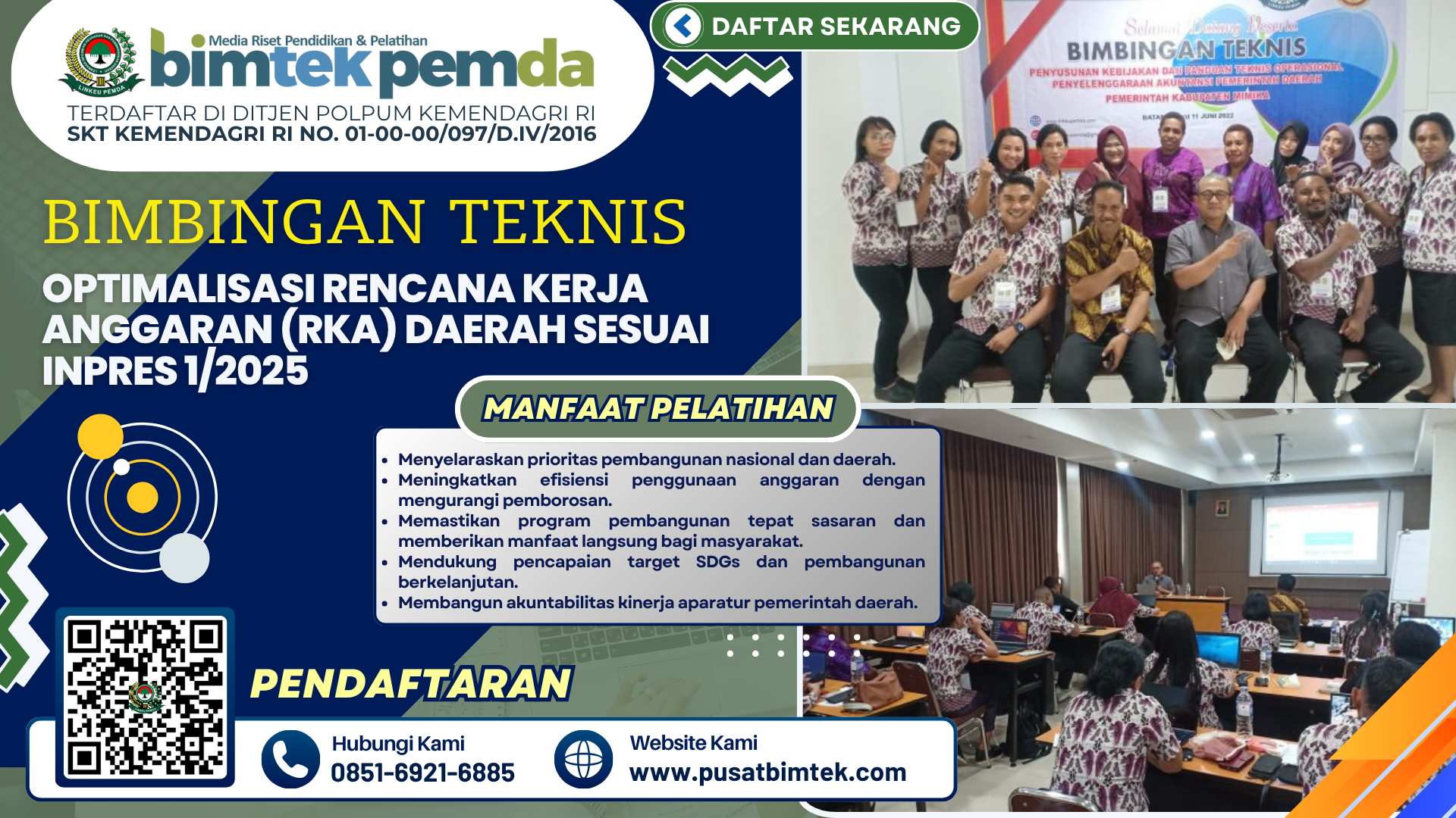 Ikuti segera Bimtek RKA Daerah sesuai Inpres 1/2025 agar aparatur daerah semakin siap dalam menyusun anggaran yang efektif, efisien, dan berorientasi pada hasil nyata.