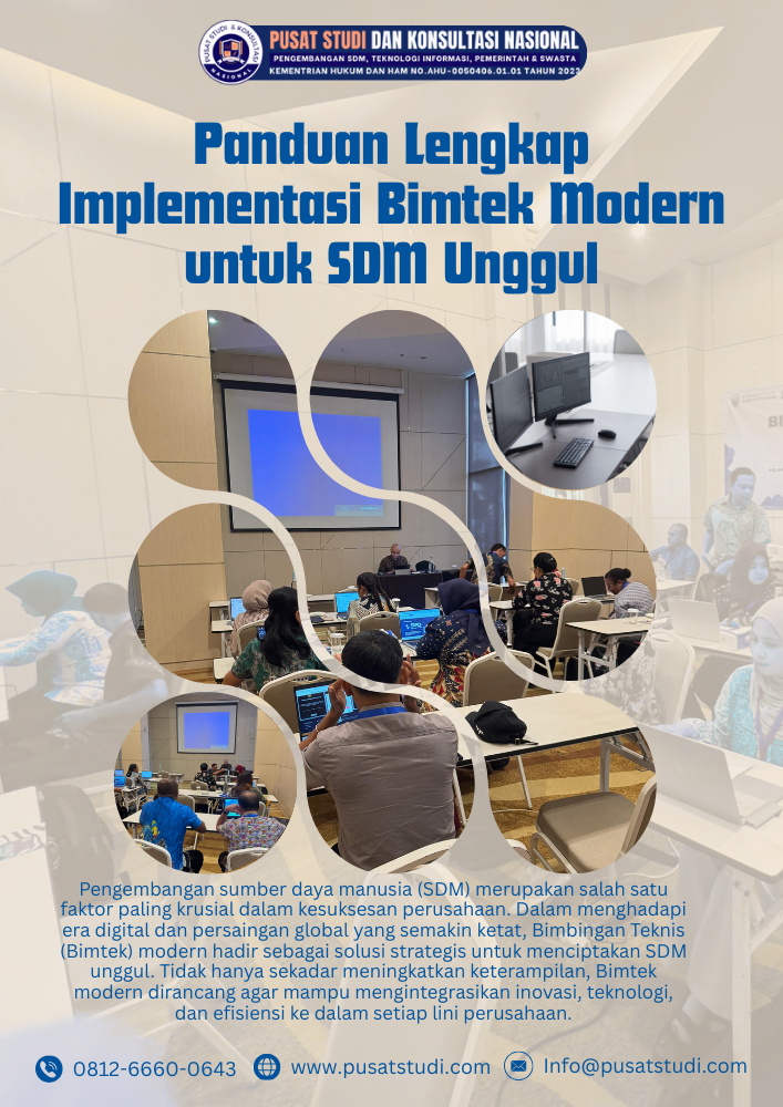 Pengembangan sumber daya manusia (SDM) merupakan salah satu faktor paling krusial dalam kesuksesan perusahaan. Dalam menghadapi era digital dan persaingan global yang semakin ketat, Bimbingan Teknis (Bimtek) modern hadir sebagai solusi strategis untuk menciptakan SDM unggul. Tidak hanya sekadar meningkatkan keterampilan, Bimtek modern dirancang agar mampu mengintegrasikan inovasi, teknologi, dan efisiensi ke dalam setiap lini perusahaan.