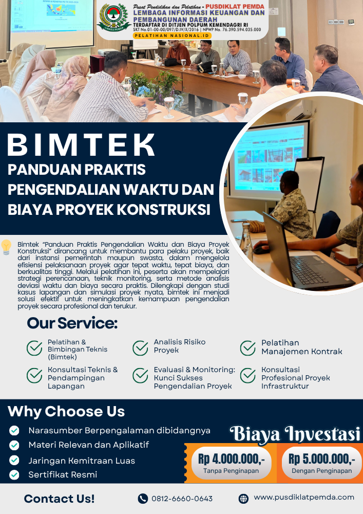 Untuk memahami pendekatan strategis dalam mengelola kontrak proyek dan penjaminan mutu, Anda dapat membaca Bimtek Pengendalian Kontrak Pekerjaan Konstruksi: Strategi Efektif Memastikan Proyek Tepat Waktu, Mutu, Dan Biaya.