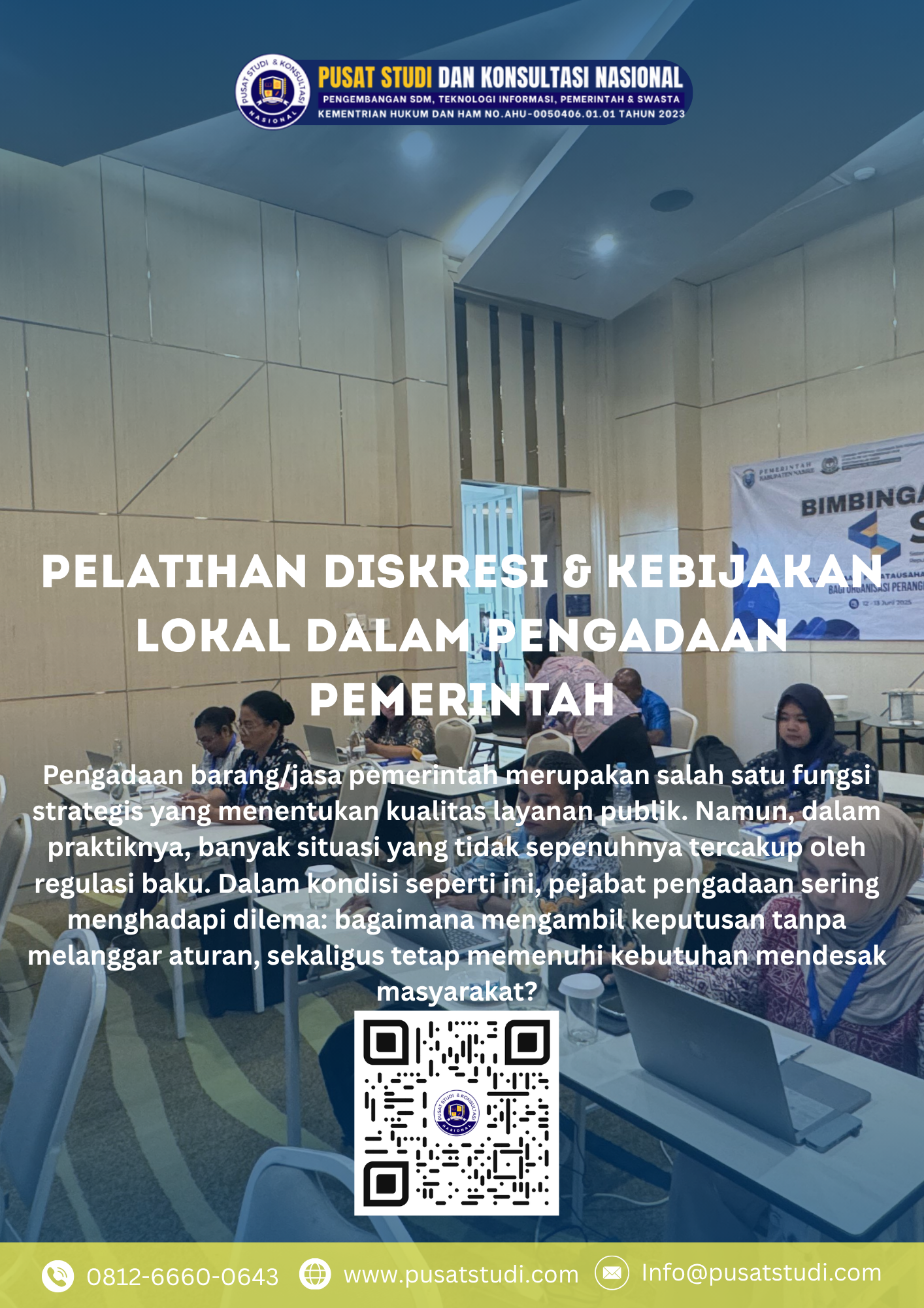 Untuk menjawab tantangan di atas, pelatihan diskresi dan kebijakan lokal dalam pengadaan pemerintah hadir sebagai solusi strategis.