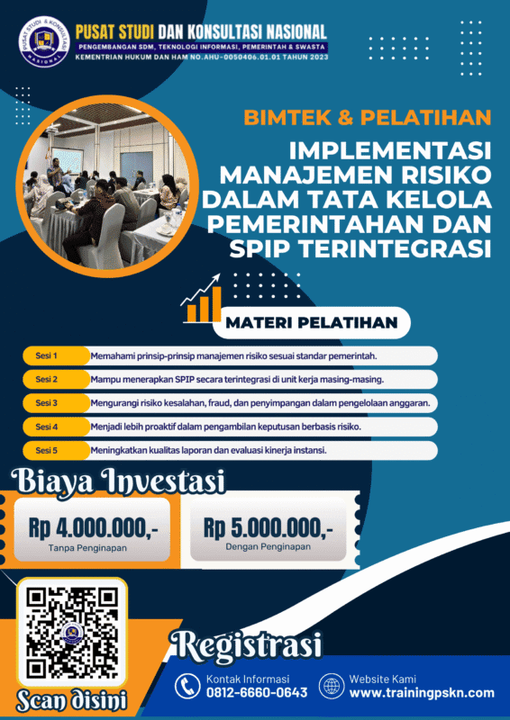Pelatihan Implementasi Manajemen Risiko membantu aparatur pemerintah menerapkan SPIP terintegrasi untuk tata kelola efektif dan akuntabel.