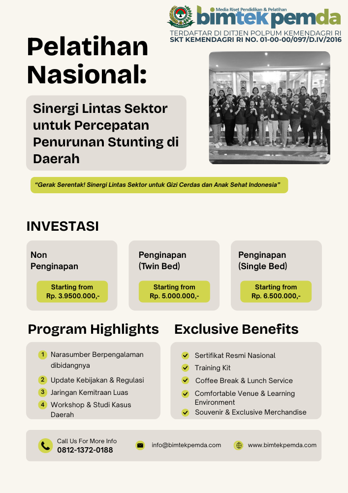 Untuk mengatasi tantangan tersebut, dibutuhkan sinergi lintas sektor antara pemerintah pusat, pemerintah daerah, sektor swasta, lembaga pendidikan, serta masyarakat. Inilah yang menjadi dasar dilaksanakannya Pelatihan Nasional: Sinergi Lintas Sektor untuk Percepatan Penurunan Stunting di Daerah — sebuah inisiatif yang dirancang untuk memperkuat kolaborasi antarpihak dalam mempercepat pencapaian target nasional penurunan stunting.