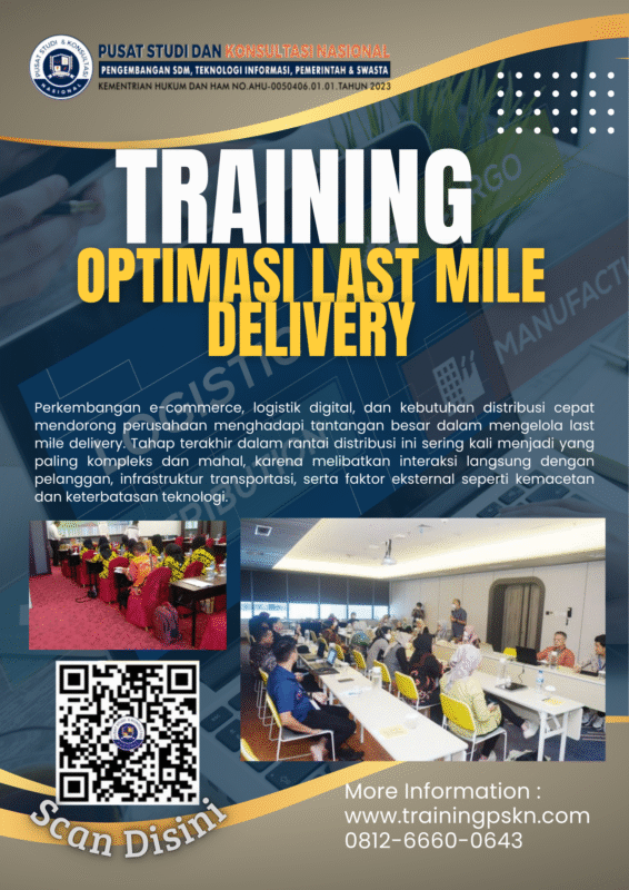 Efisiensi last mile delivery menjadi faktor kunci dalam meningkatkan kepuasan pelanggan, menekan biaya operasional, dan menjaga daya saing perusahaan. Oleh karena itu, dibutuhkan pelatihan khusus yang membekali peserta dengan strategi, teknologi, serta keterampilan manajemen untuk mengoptimalkan proses distribusi tahap akhir secara efektif dan berkelanjutan.
