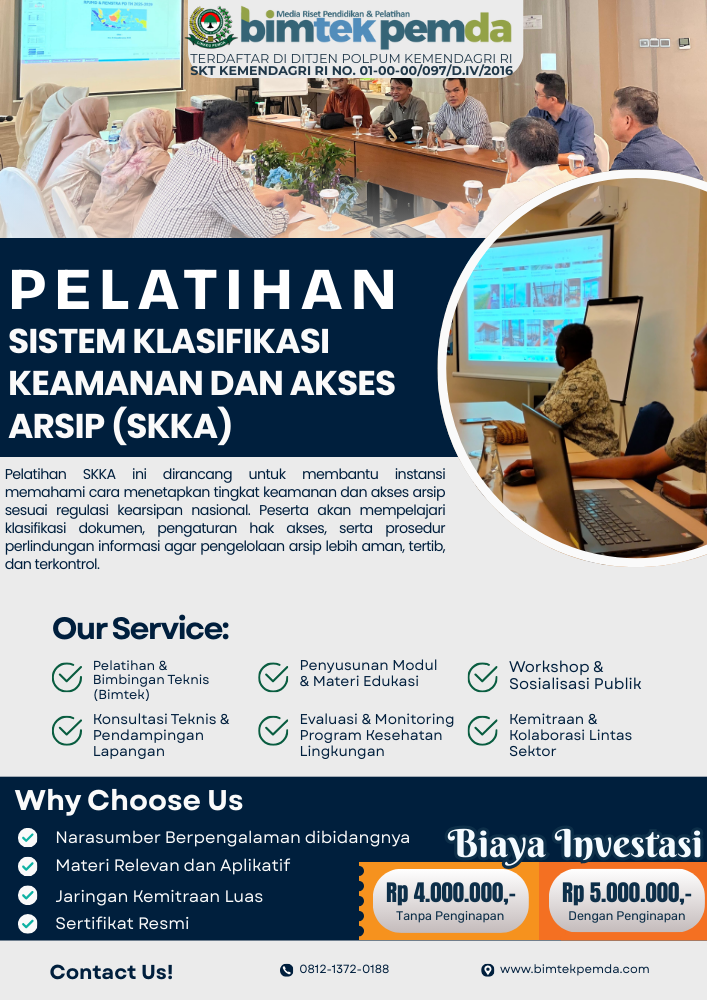 Pelatihan SKKA dirancang untuk membantu instansi pemerintah memahami bagaimana mengklasifikasikan arsip berdasarkan tingkat keamanan, menetapkan hak akses, serta menerapkan prosedur perlindungan sesuai standar nasional. Artikel pilar ini membahas secara komprehensif konsep SKKA, manfaat, metode implementasi, hingga studi kasus lapangan.