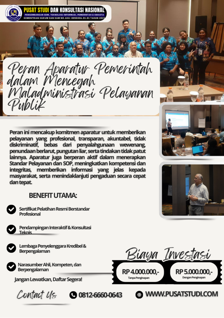 Undang-Undang Nomor 25 Tahun 2009 tentang Pelayanan Publik secara tegas mengatur kewajiban penyelenggara dan aparatur pemerintah untuk memberikan pelayanan yang berkualitas, transparan, dan akuntabel. Dalam konteks ini, aparatur pemerintah memegang peran strategis sebagai garda terdepan dalam mencegah terjadinya maladministrasi.