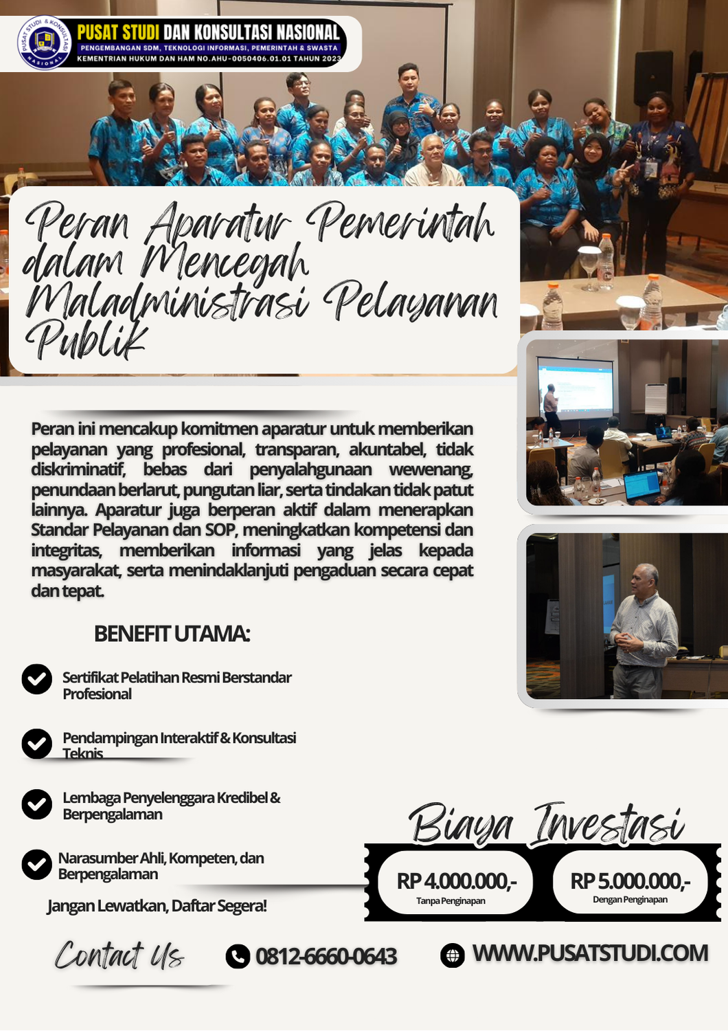 Program bimtek ini membantu aparatur menerapkan pelayanan publik yang sesuai aturan dan berorientasi pada kepuasan masyarakat.