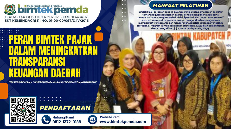 Transparansi keuangan daerah adalah fondasi utama dalam membangun kepercayaan publik dan menciptakan tata kelola pemerintahan yang baik. Bimtek Pajak hadir sebagai solusi nyata untuk meningkatkan kompetensi aparatur, memperbaiki sistem pelaporan, serta memperkuat akuntabilitas dalam pengelolaan pajak daerah.
