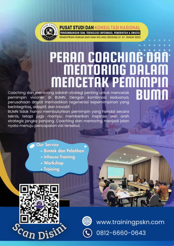 Coaching dan mentoring adalah strategi penting untuk mencetak pemimpin visioner di BUMN. Dengan kombinasi keduanya, perusahaan dapat memastikan regenerasi kepemimpinan yang berintegritas, adaptif, dan inovatif.
