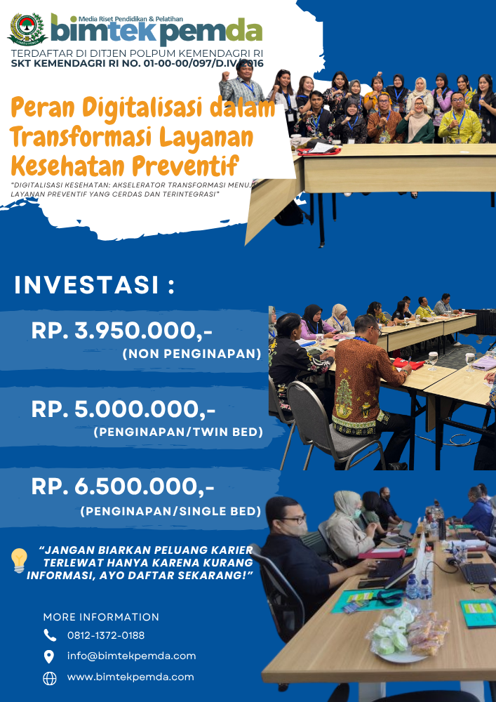 Digitalisasi tidak akan berjalan efektif tanpa SDM yang memahami teknologi dan data kesehatan. Oleh karena itu, pelatihan seperti Bimtek Transformasi Proaktif: Pelatihan Strategis Pencegahan Penyakit Kardiometabolik menjadi penting untuk meningkatkan kemampuan tenaga kesehatan dalam:
