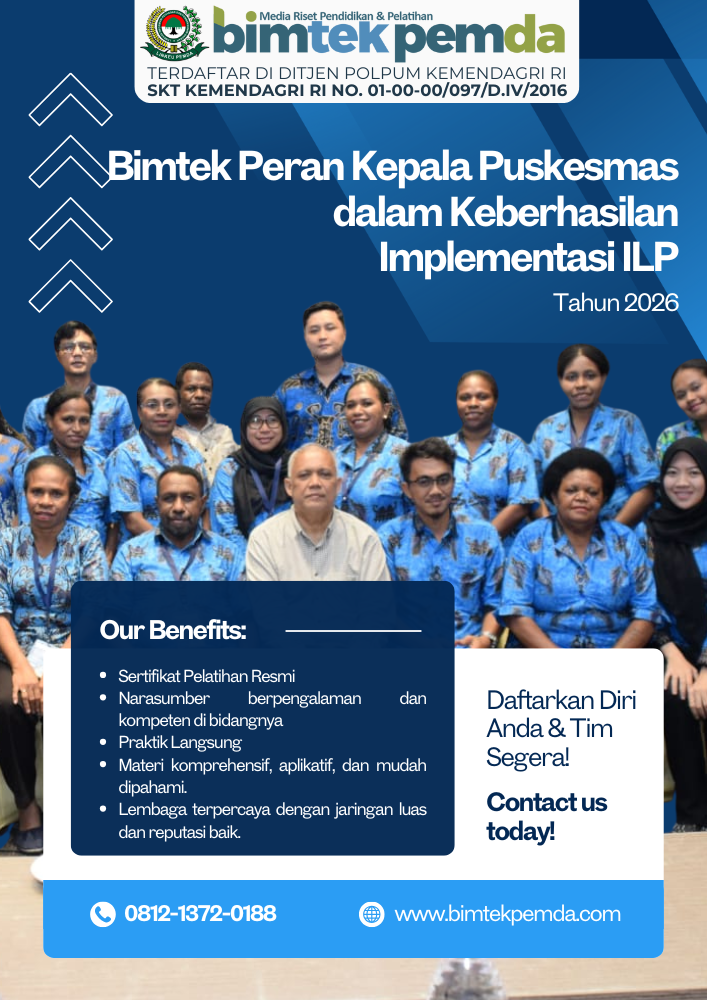 Penguatan kapasitas SDM ini umumnya dilakukan melalui program pendampingan terstruktur, salah satunya melalui (BIMTEK DAN KAJI TERAP STRATEGI IMPLEMENTASI ILP DI PUSKESMAS) yang dirancang khusus untuk pimpinan dan tim Puskesmas.