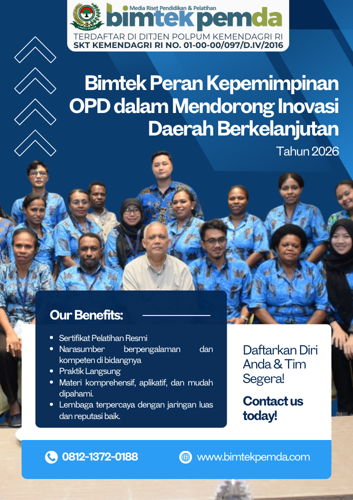 Pembahasan peran kepemimpinan OPD dalam artikel ini merupakan bagian penting dari kerangka besar inovasi daerah tahun 2026. Untuk memahami konteks strategis dan arah kebijakan inovasi secara menyeluruh, artikel ini terhubung langsung dengan artikel pilar [Bimtek Akselerasi 2026: Inovasi Daerah untuk Meningkatkan Kinerja dan Daya Saing OPD], yang membahas inovasi daerah dari perspektif kebijakan, kinerja, dan daya saing pemerintah daerah.