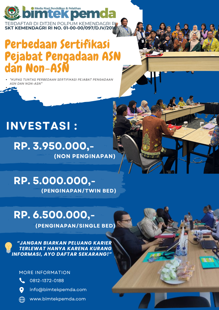 Namun, meskipun tujuan utamanya sama, terdapat sejumlah perbedaan mendasar dalam sertifikasi pejabat pengadaan ASN dan non-ASN, mulai dari regulasi, syarat pendaftaran, hingga peluang karier setelah memiliki sertifikat.