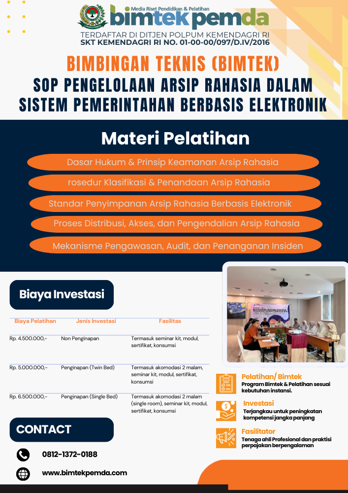 Pengelolaan arsip rahasia merupakan salah satu aspek paling sensitif dalam tata kelola pemerintahan. Dalam era transformasi digital, seluruh instansi wajib menerapkan standar keamanan baru yang selaras dengan Sistem Pemerintahan Berbasis Elektronik (SPBE). Penyusunan SOP (Standard Operating Procedure) tidak lagi cukup hanya mengatur penyimpanan dokumen fisik, tetapi harus mencakup seluruh siklus hidup arsip digital, termasuk akses, distribusi, penyimpanan cloud, enkripsi, hingga pemusnahan.