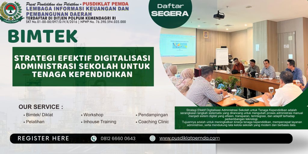 Pelatihan ini bisa dilakukan melalui bimtek atau workshop rutin, sesuai modul yang dijelaskan di Keterampilan Administratif & Teknologi Digital 5.0 bagi Tenaga Kependidikan.