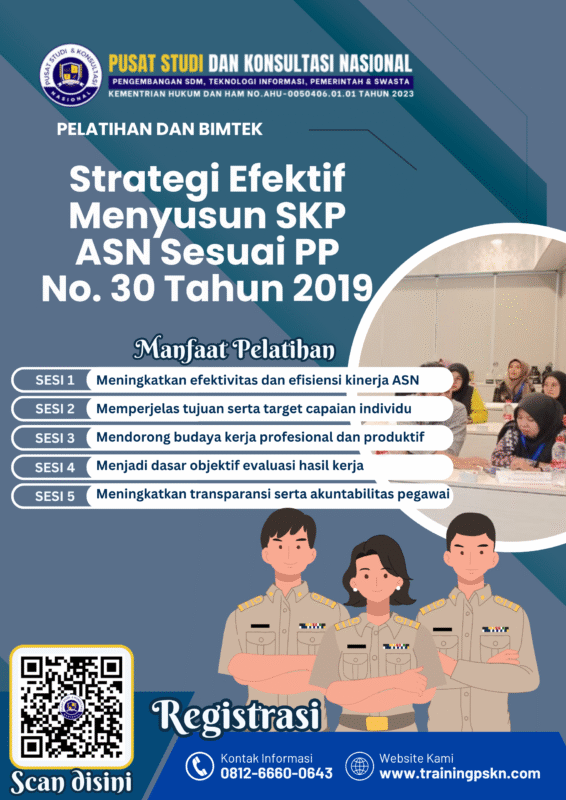 Segera tingkatkan kompetensi ASN Anda melalui pelatihan penyusunan SKP yang efektif dan berbasis regulasi terbaru, untuk mewujudkan birokrasi yang profesional dan berkinerja tinggi.