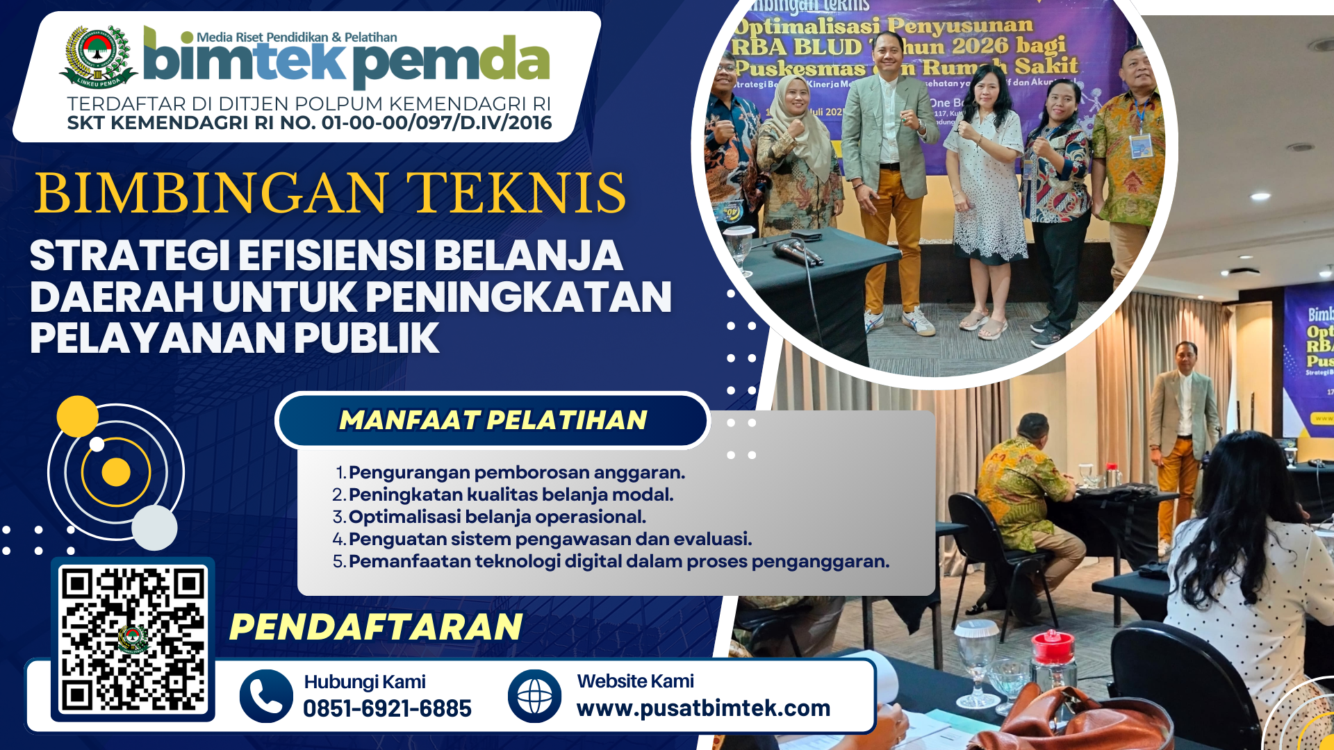 Ikuti program bimtek keuangan daerah untuk memperkuat strategi efisiensi belanja, meningkatkan transparansi APBD, dan mewujudkan pelayanan publik yang lebih optimal.