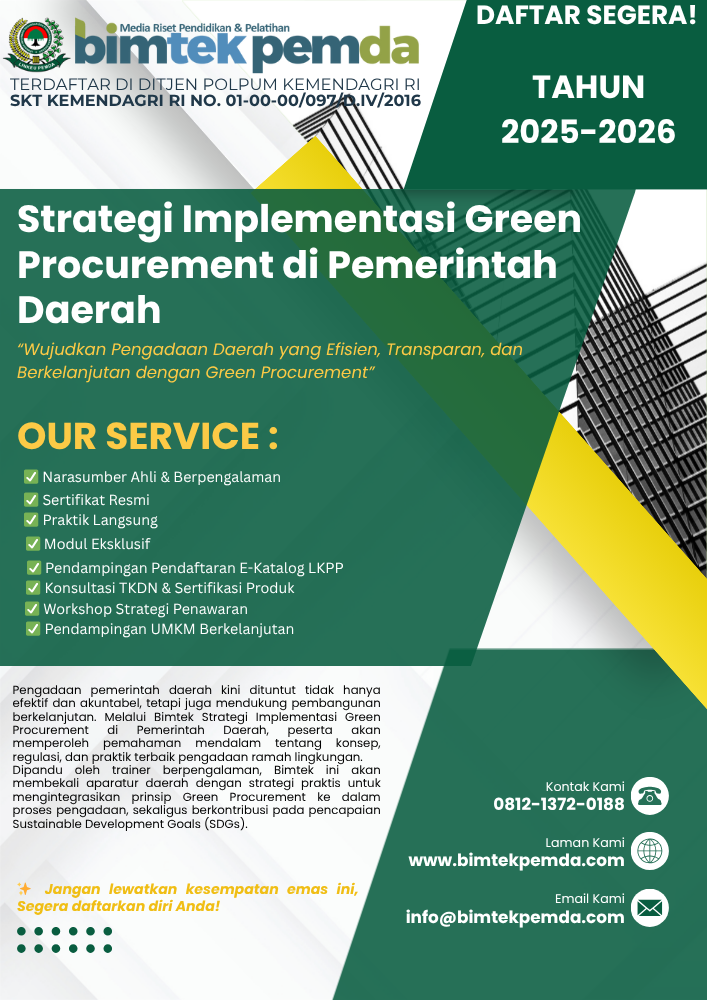 Segera ikuti bimtek green procurement untuk aparatur pemerintah daerah, wujudkan pengadaan yang efisien, ramah lingkungan, dan berkelanjutan.