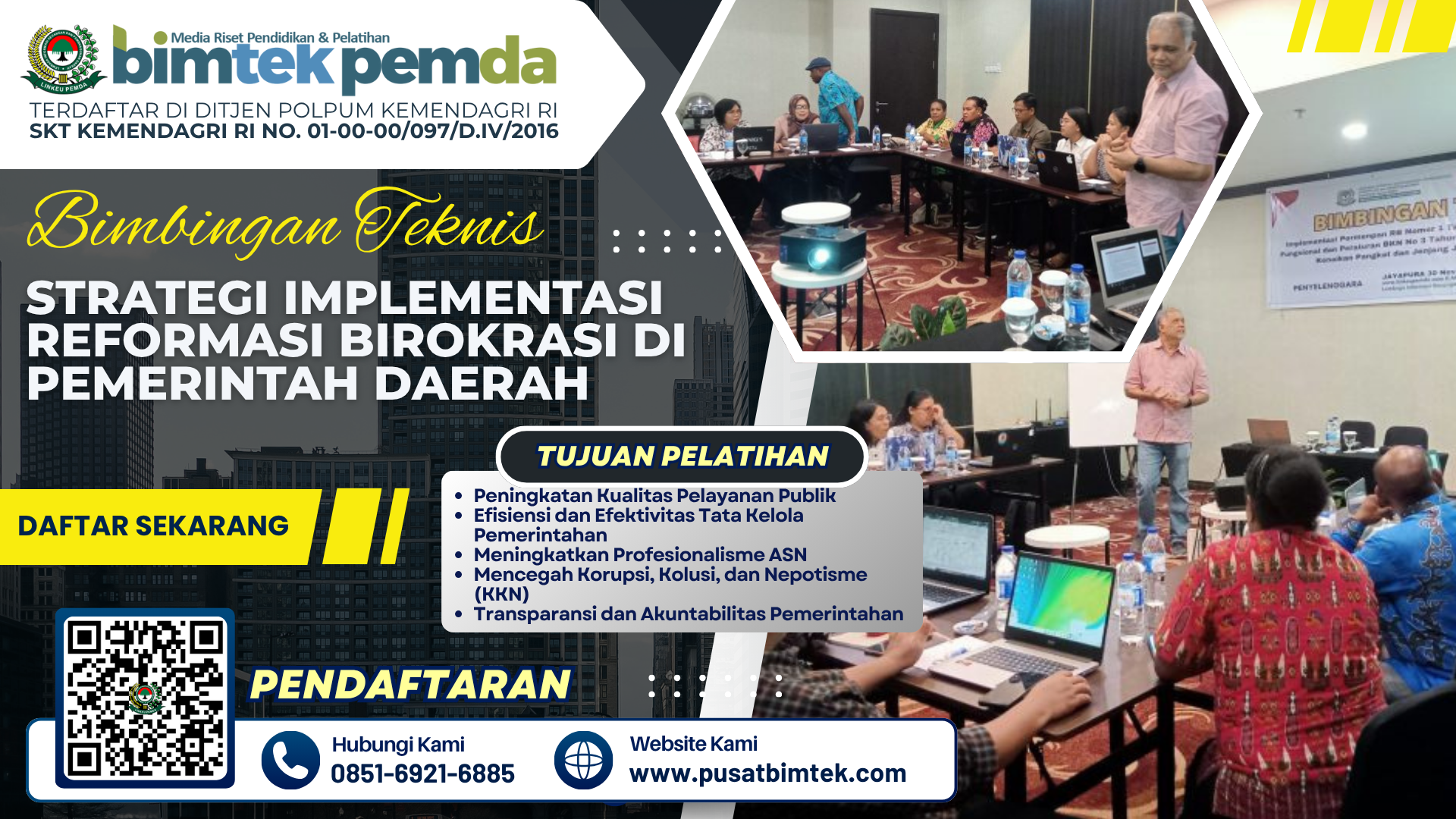 Tingkatkan kapasitas aparatur daerah Anda dengan mengikuti Bimtek Reformasi Birokrasi & Manajemen Kinerja ASN untuk mewujudkan pemerintahan yang profesional, akuntabel, dan berorientasi hasil.