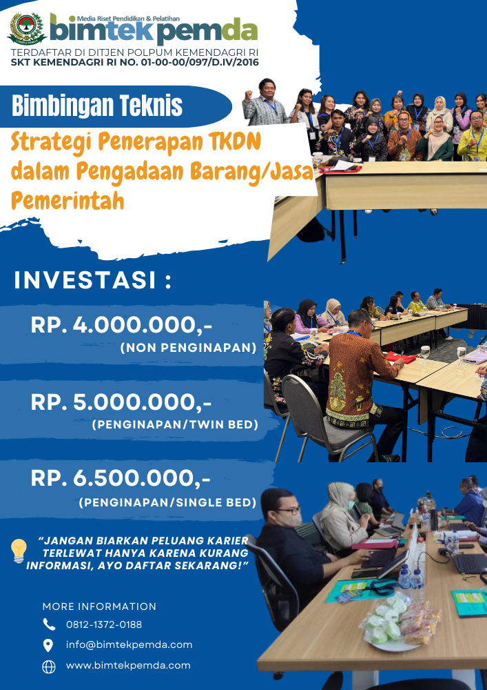 Penerapan TKDN dalam pengadaan barang/jasa pemerintah merupakan strategi penting untuk memperkuat industri nasional dan memastikan belanja negara memberikan manfaat maksimal bagi perekonomian dalam negeri. Dengan perencanaan yang tepat, pemanfaatan e-Catalog, serta peningkatan kompetensi ASN pengadaan melalui pelatihan yang terarah, kebijakan TKDN dapat diimplementasikan secara optimal dan berkelanjutan. Saatnya pemerintah pusat dan daerah menjadikan TKDN sebagai fondasi utama dalam pengadaan barang/jasa yang berdaya saing, transparan, dan berpihak pada kepentingan nasional.