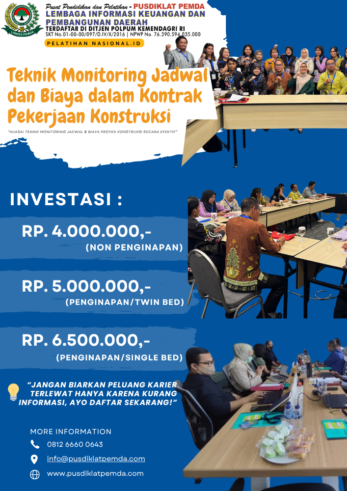 Optimalkan kinerja proyek konstruksi Anda dengan menerapkan sistem monitoring jadwal dan biaya yang profesional dan terintegrasi bersama tim ahli melalui Bimtek Pengendalian Kontrak Pekerjaan Konstruksi: Pedoman Lengkap untuk Praktisi.