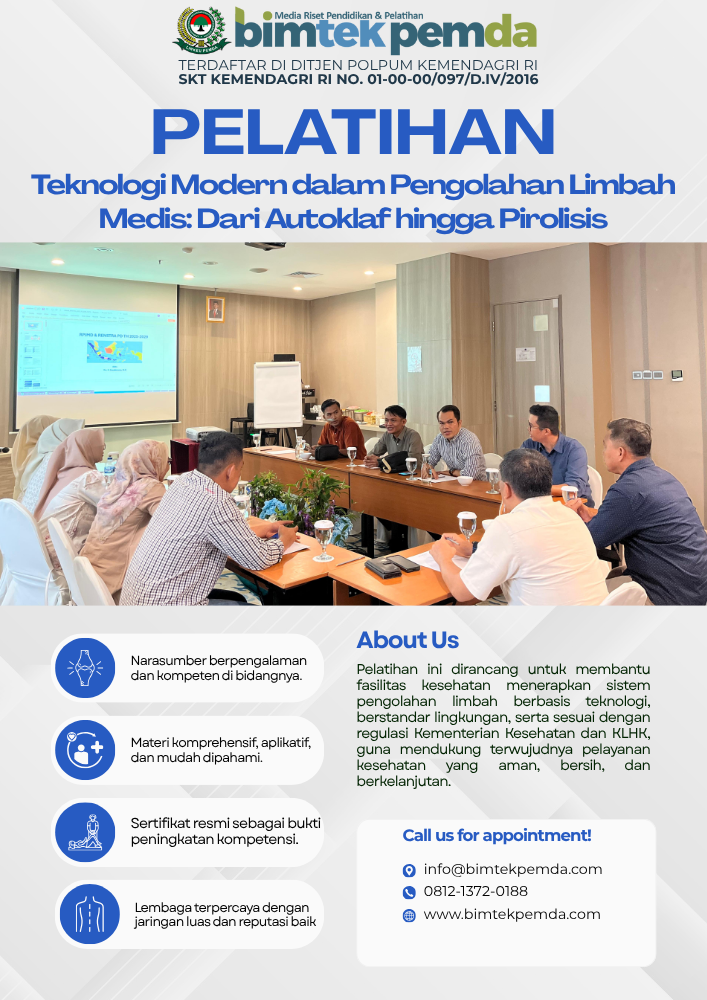 Segera tingkatkan kapasitas tim Anda melalui pelatihan pengelolaan limbah medis berbasis teknologi modern untuk masa depan kesehatan yang lebih aman dan lestari.