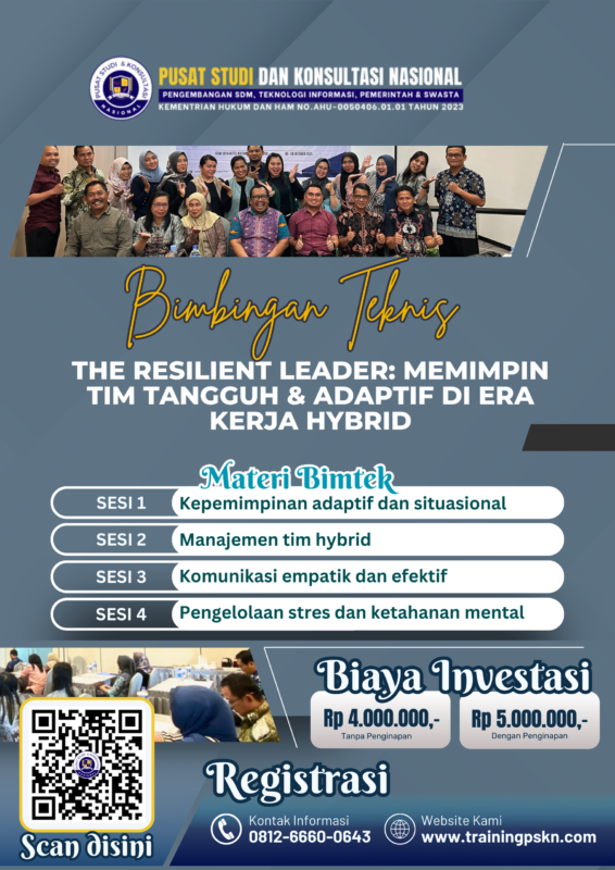 Resiliensi kepemimpinan bukan bakat bawaan semata, tetapi kompetensi yang dapat dikembangkan melalui pelatihan dan bimbingan teknis. Program pelatihan kepemimpinan modern berperan penting dalam membekali pemimpin menghadapi tantangan kerja hybrid.