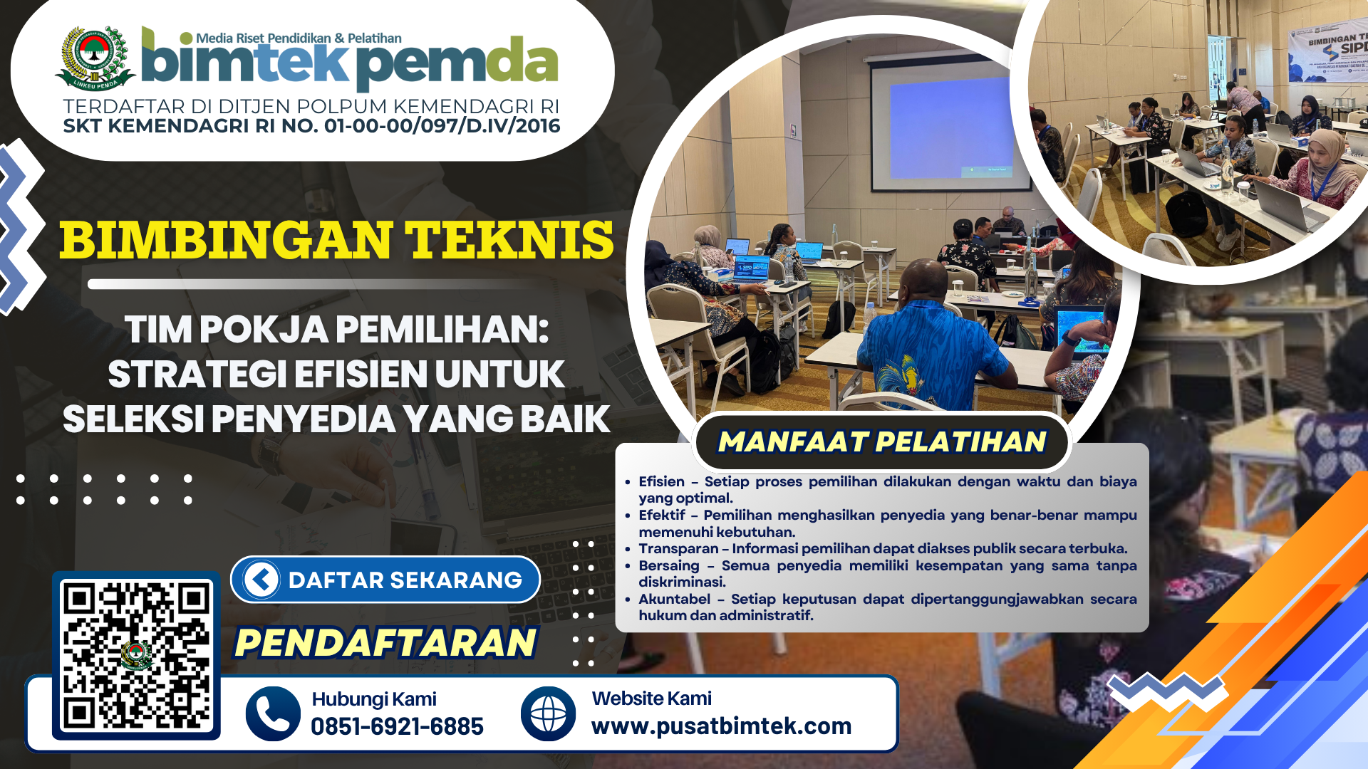 Sebagai langkah peningkatan kapasitas, penting bagi anggota Pokja untuk mengikuti pelatihan seperti Bimtek Penguatan Kapabilitas PPK, Pokja Pemilihan, dan APIP dalam Mencegah Penyimpangan PBJ yang secara komprehensif membahas tata cara pemilihan penyedia dan upaya pencegahan risiko hukum maupun administratif.